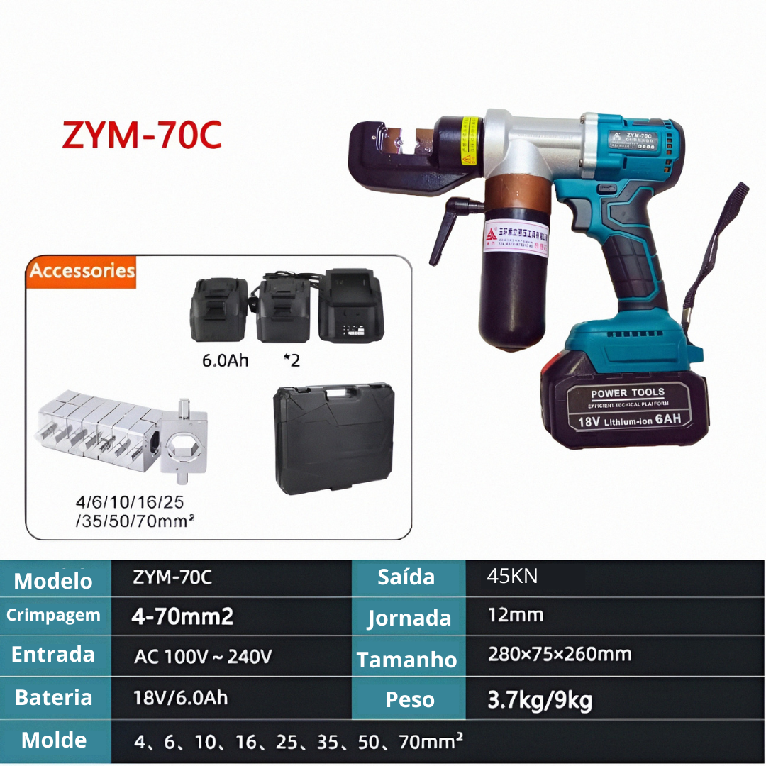 Alicate De Crimpagem Hidráulico Recarregável Zym70c