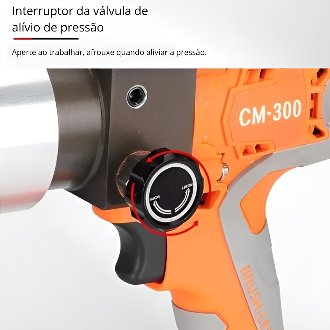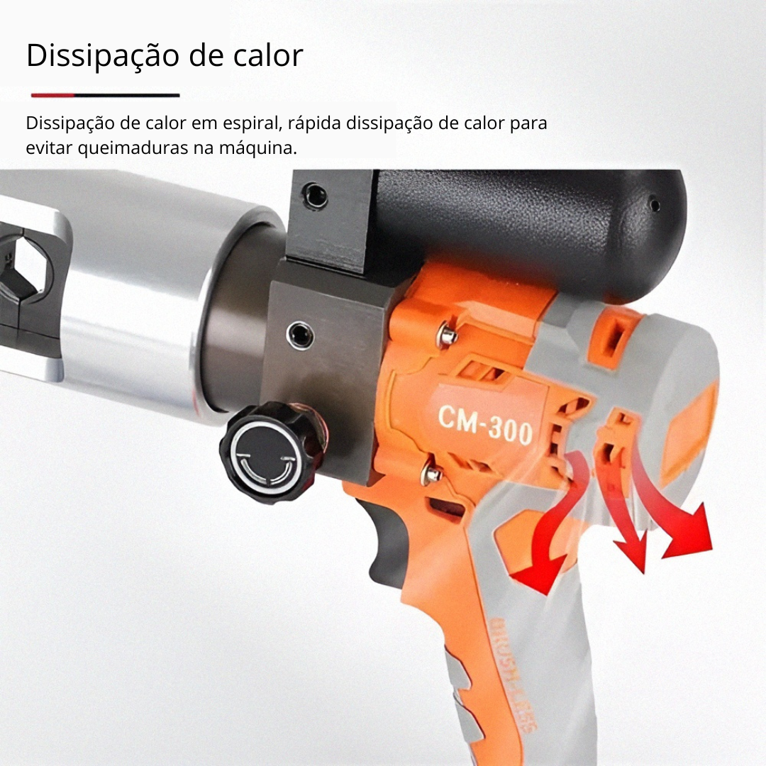 Funciona com bateria recarregável (acompanha 2), garantindo mobilidade total, sem depender de tomadas. O botão de alívio de pressão torna a operação mais segura e confortável, enquanto o sistema de resfriamento evita superaquecimento durante o uso contínuo.