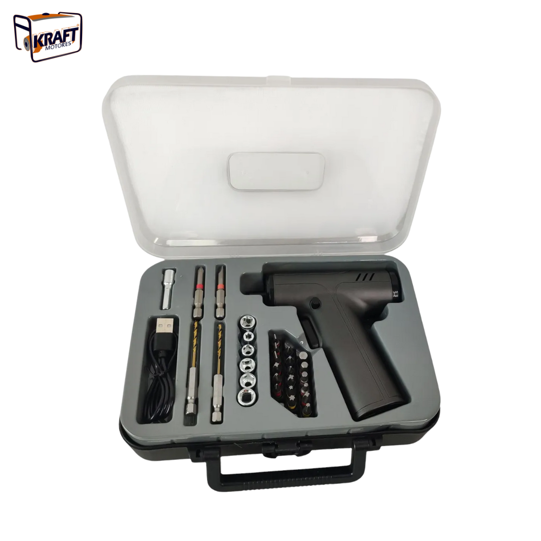 Parafusar com precisão e sem esforço! A Chave de Fenda Elétrica Recarregável é compacta, leve e potente, ideal para tarefas domésticas, manutenções e pequenos reparos com máxima eficiência.